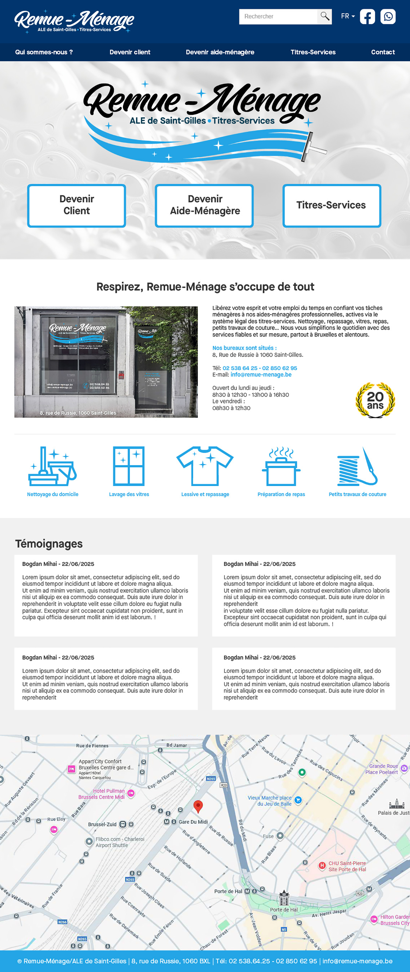 Remue-Ménage encadre les aides ménagères en planifiant leur semaine, en regroupant les lieux de prestation, en prodiguant les informations utiles pour se rendre sur les lieux de travail et en procurant un accompagnement social par son personnel administratif (documents sociaux, démarches administratives, formation continuée..).